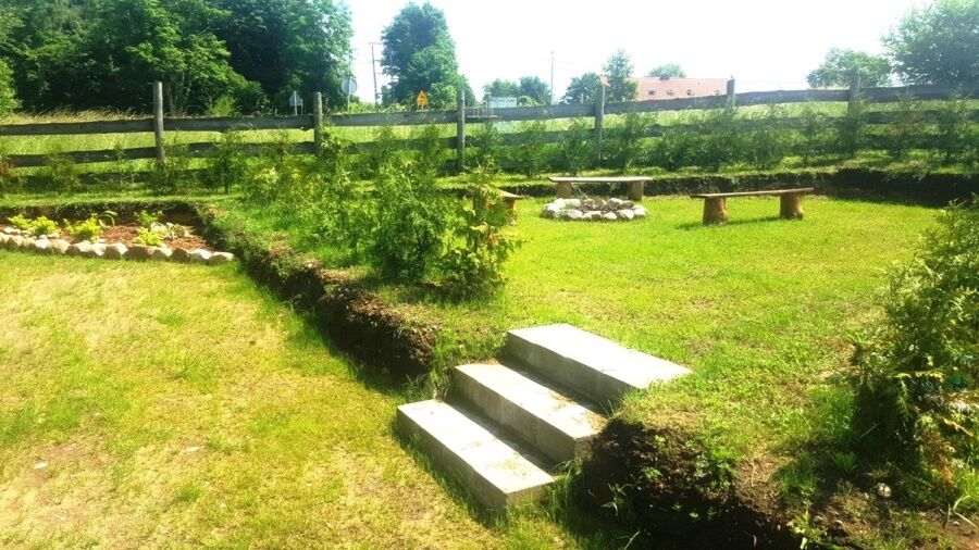 Na terenie znajduje się boisko do siatkówki oraz miejsce na ognisko, piaskownica dla dzieci, huśtawki. Teren jest ogrodzony płotem drewnianym, granica działki obsadzona tujami.